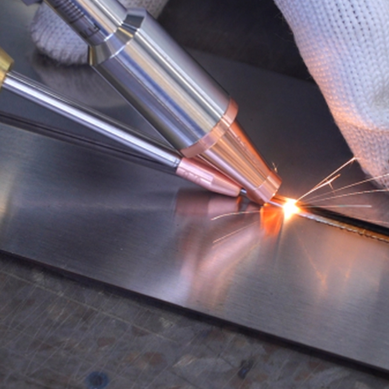手持式焊接機(jī)采用高功率光纖激光器做為激光發(fā)射源。焊接機(jī)主要組成部分有:激光器(含光纖)、激光焊接頭、控制器、冷水機(jī)等。運(yùn)用手持激光焊接頭進(jìn)行運(yùn)動(dòng),同時(shí)配置雙溫雙控冷水機(jī),低溫水為激光器降溫使用,高溫水為光纖及焊接頭降溫使用。