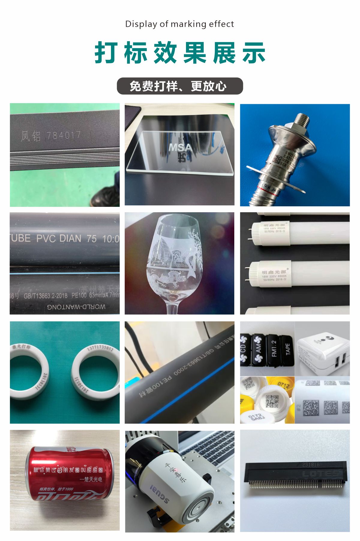 采用美國(guó)原裝進(jìn)口紫外激光器,一體化設(shè)計(jì),強(qiáng)制風(fēng)冷設(shè)計(jì),基本實(shí)現(xiàn)免維護(hù)。幾乎對(duì)所有材料可進(jìn)行激光標(biāo)記。